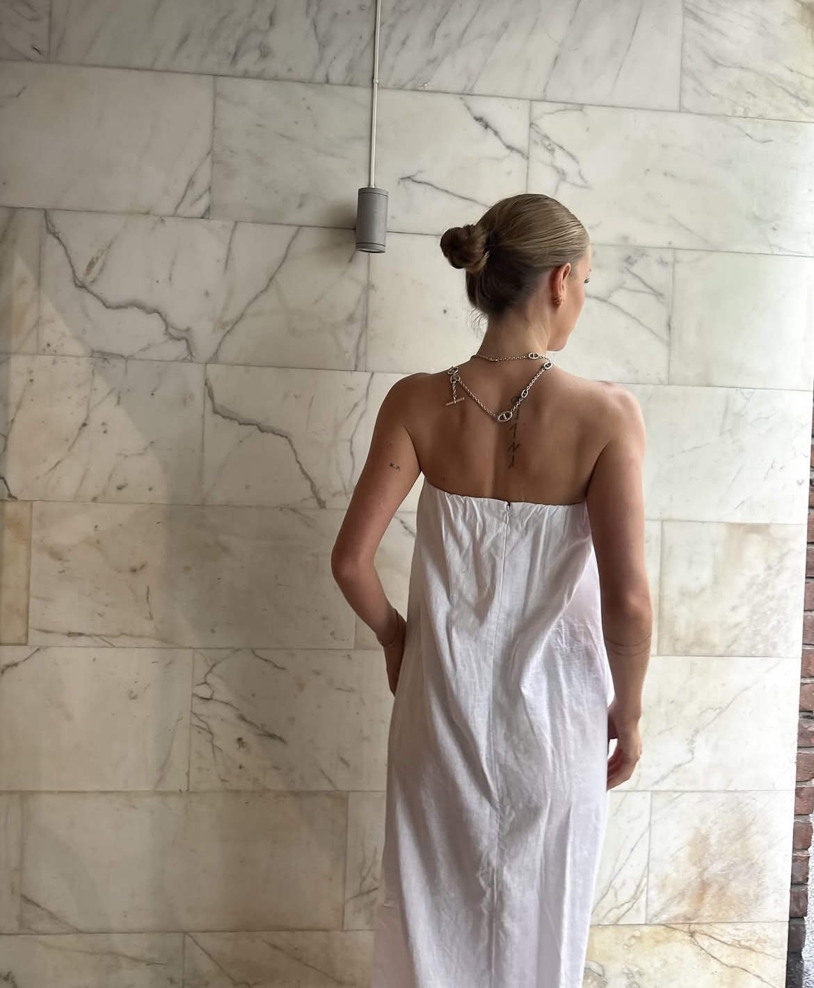 Skulderpartiet skal få puste i sommer. Den stroppeløse bandeautoppen er tilbake i full styrke, og den kombinerer casual sexiness med komfort og enkel styling. Bruk topp til vide bukser, cargoshorts eller skjørt med lav midje. Kjolen fungerer både til stranden og finere anledninger.
