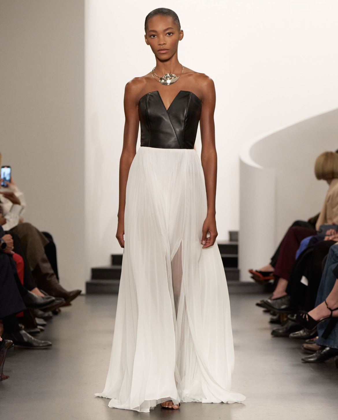 En vårtrend perfekt for norske temperaturer: skinn var mer enn hot denne sesongen. Skjørt, korsett, frakker, topper og så klart – BH-er. Alt du kan tenke deg kom i en skinn-utgave for SS26. Fra helantrekk i skinn hos Saint Laurent og Hermès, fikk vi også bikinier og små topper hos Ralph Lauren og Givenchy. En trend som garantert blir upraktisk for varme somre i motehovedstadene Milano og Paris, kan nemlig være helt perfekt for en moteelsker i kjølige Norge.