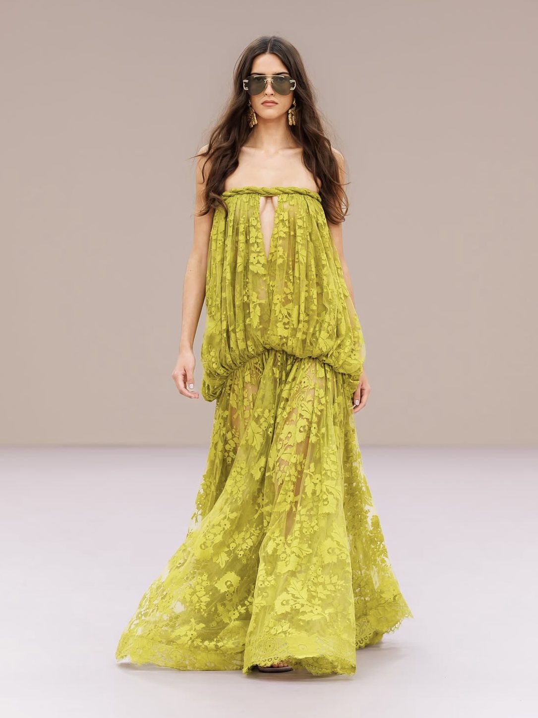 Det var mange farger som gikk igjen for flere av designerne for SS26, spesielt av de litt sterkere variantene. En av fargene som skilte seg ut var Chartreuse-grønn. En farge litt mørkere enn limegrønn, med et noe dypere og mer sofistikert uttrykk. Grønnfargen ble en gjenganger hos Saint Laurent, Zimmermann, Alaïa og Prada.