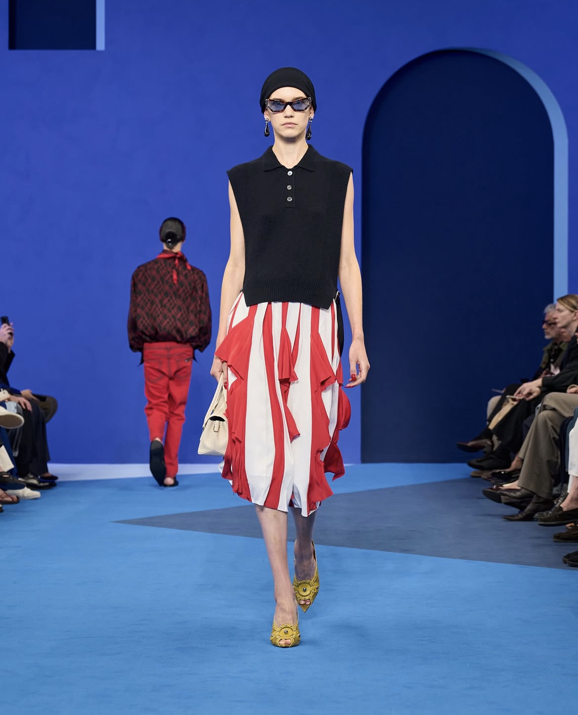 Sterke nyanser av blått, rødt og gult dominerte flere av vårkolleksjonene. Fargene dukket opp både blandet, men også hver for seg – som helrøde antrekk fra topp til tå. Hos Lanvin fikk vi stripete skjørt i rødt med gule sko, mens hos Loewe dukket alle fargene opp i en stripete kreasjon, med gul clutch og røde sko.