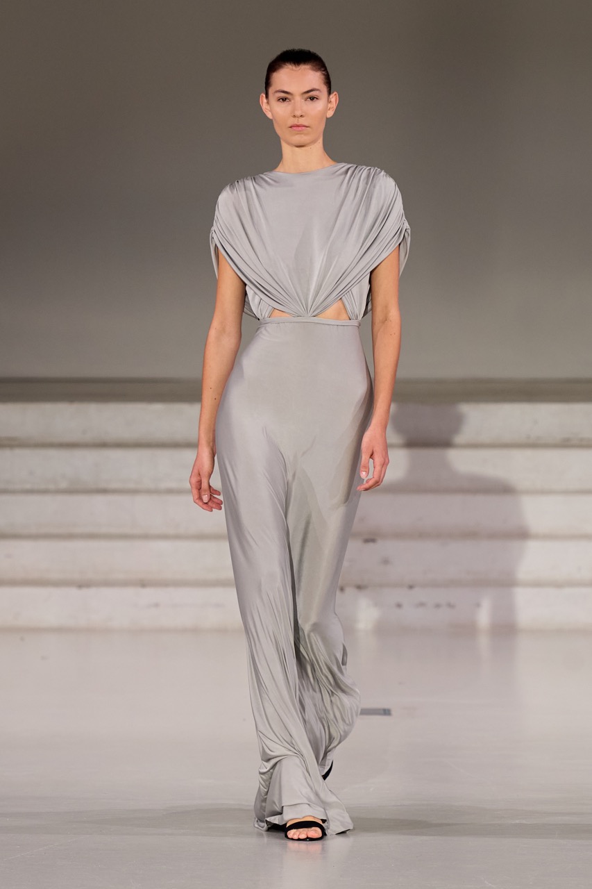 En stor kontrast til fjorårets pastellrosa og butter yellow – lysegrå toner dominerte SS26-visningene. Fra helgrå antrekk hos The Attico, til vakre kjoler hos Forza Collective, viste merkene at grått på ingen måte trenger å være kjedelig.