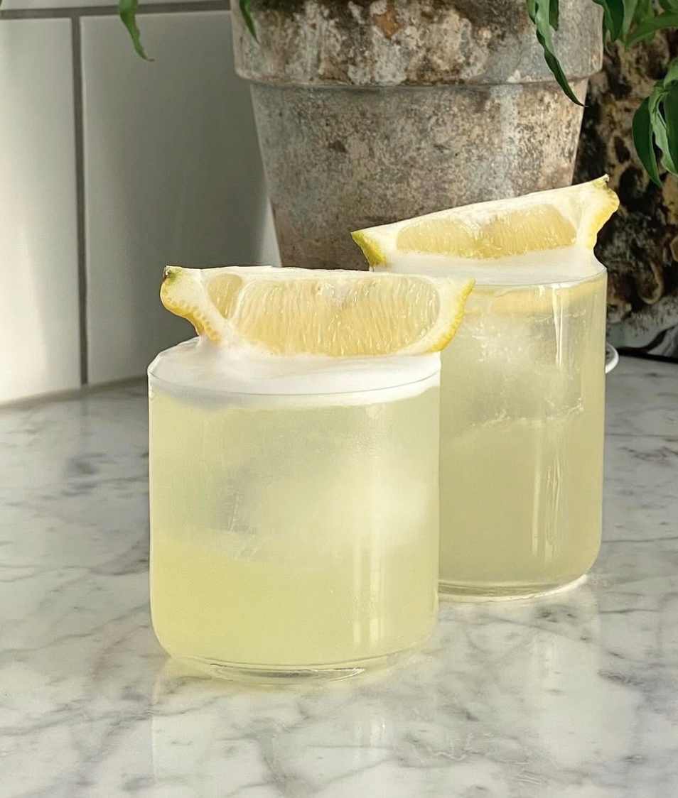 Ha gin, sukkerlake, sitronsaft, eggehvite og noen kvister oregano i en shaker. Rist godt. Ha deretter i is og rist en gang til. Finn fram glass og ha i en stor isbit. Sil drinken over i glasset. Skjær sitronen i skiver.