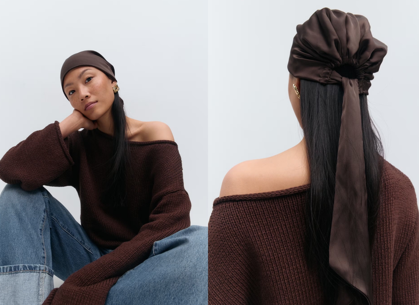 Er det et silkeskjerf fra Hermès, et printet secondhand-funn fra Fretex eller et minimalistisk ensfarget fra Arket? Det spiller egentlig ingen rolle, så lenge du knyter det rundt håret.