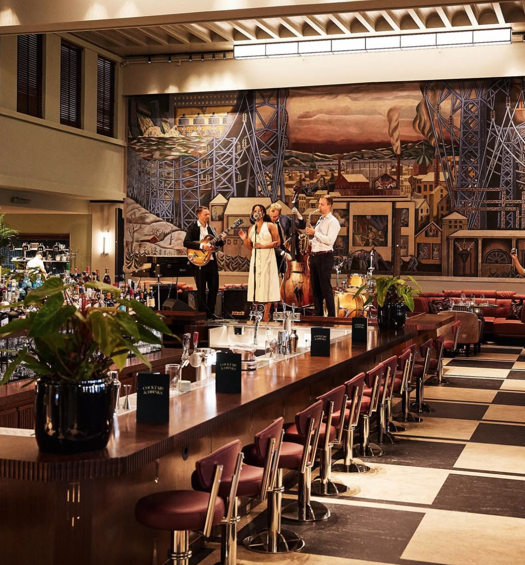 Cocktailbaren i enden av rommet serverer alt fra tidløse klassikere til signaturdrinker, utviklet spesielt for Sommerro. Med et interiør som 1930-tallets glamour, og en atmosfære som alltid summer av liv, er Ekspedisjonshallen et sted man kan flykte fra hverdagen.
