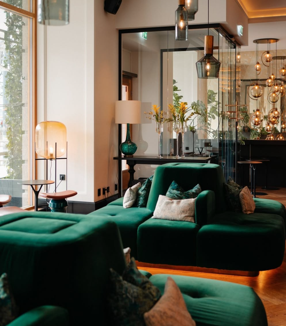 Interiøret speiler barens transatlantiske ånd: sofistikert, som en lounge i Lower Manhattan, med norske designelementer og historiske referanser til Amerikalinjens reiser over Atlanteren.