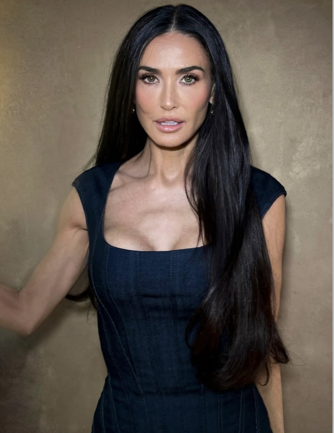 Langt hår bæres rett, tungt og uten lag. Midtskill og rette tupper gir et stramt, elegant uttrykk med referanser til tidlig 2000-tall. Frisyrens styrke ligger i enkelheten og i kontrasten til de mer teksturerte trendene.