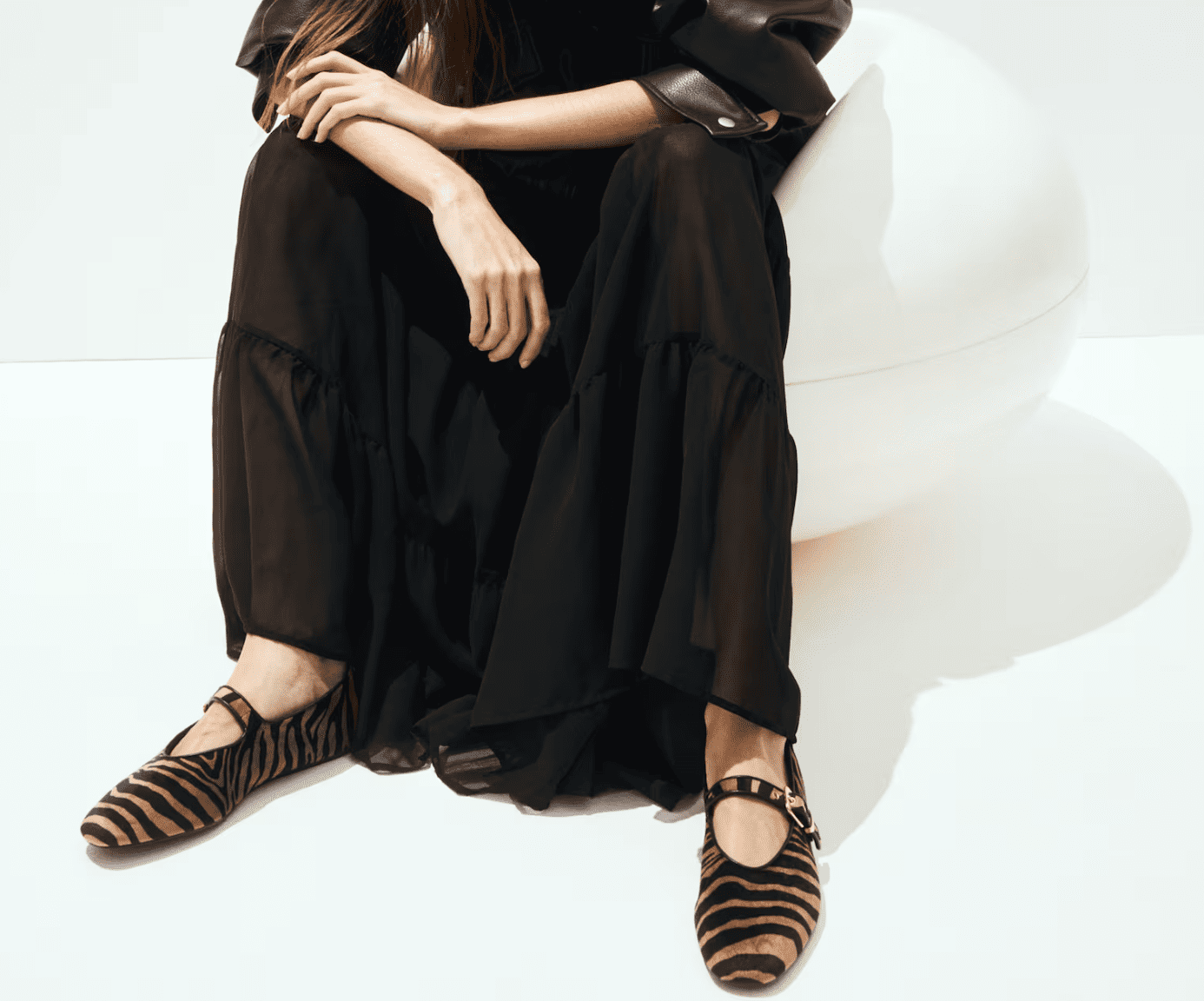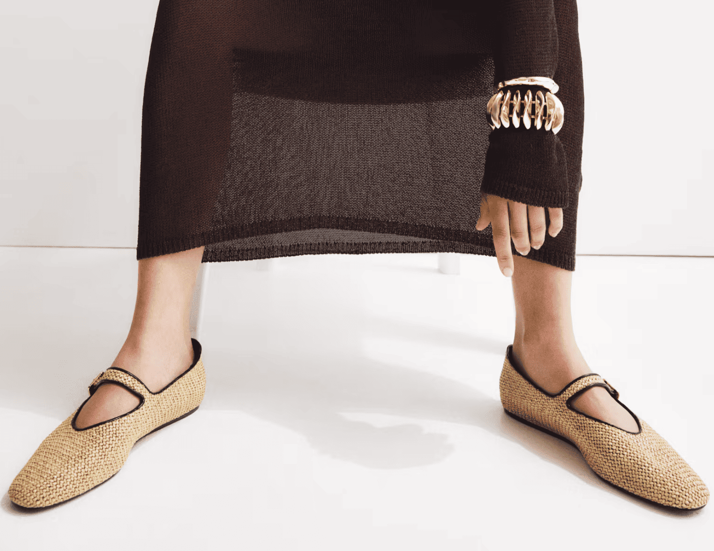 Ballerinaen gjør et tydelig comeback, gjerne med spissere tå, remmer eller små sløyfer. De gir et feminint uttrykk og passer like fint til vide bukser som til kjoler og miniskjørt.