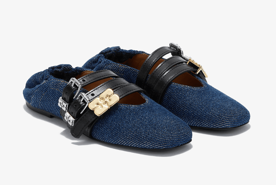Ganni Trippel Sue-ballerinasko i denim 5050NOK