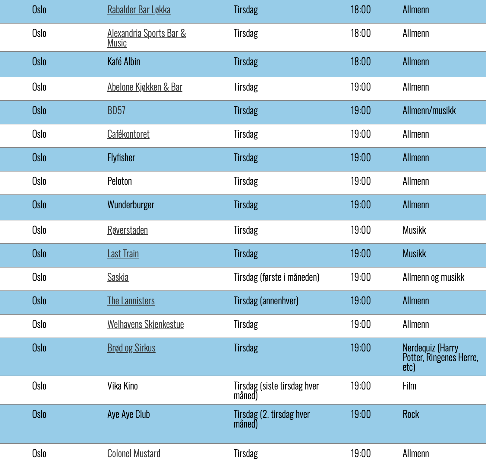Det er lite som slår en quiz-kveld med gode venner, høyt konkurranseinnstinkt og god lagånd. Rundt omkring i Oslo arrangeres det ukentlige quiz med ulike tema. Oversikten fant jeg på Norges Quiz-forbund, og det hevdes at det bør dobbeltsjekkes med stedet. Men her er noen av arrangementene som kan sjekkes ut i mars: