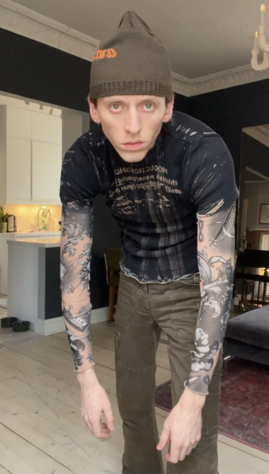 Vi er først og fremst nysgjerrige på hvordan han selv beskriver sin egen stil. – Jeg er generelt dårlig på basics, noe som gjør at jeg har mange plagg som nødvendigvis ikke passer så godt sammen. Likevel kombinerer jeg dem, og da blir det ofte flere plagg som kjemper om oppmerksomheten. Men det står jeg i.