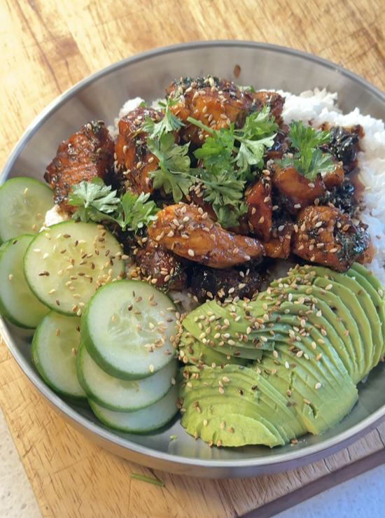 Se Sandras virale oppskrift på honningglasert laks med kokosris HER!