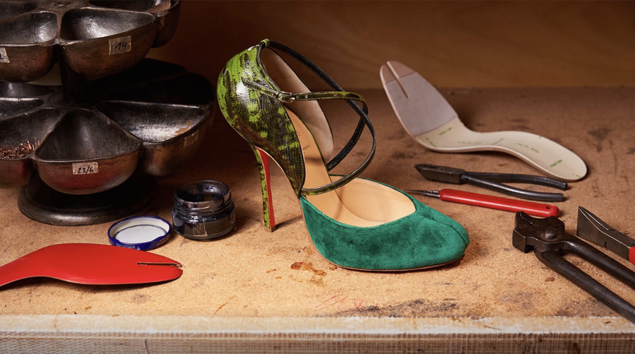 «Christian Louboutin by Maison Margiela» – Margielas eksperimentelle estetikk møter Louboutins håndverk. Resultatet? Sandaler og pumps med rå, dekonstruktive detaljer og uventede materialvalg.