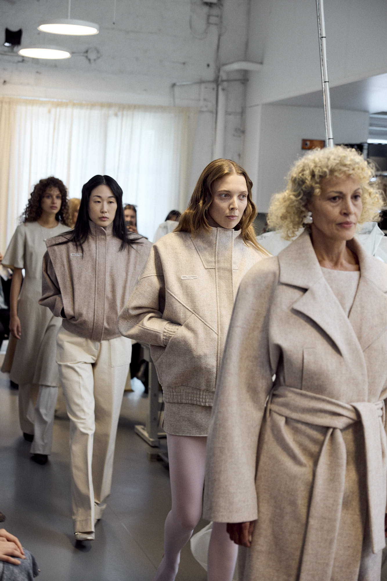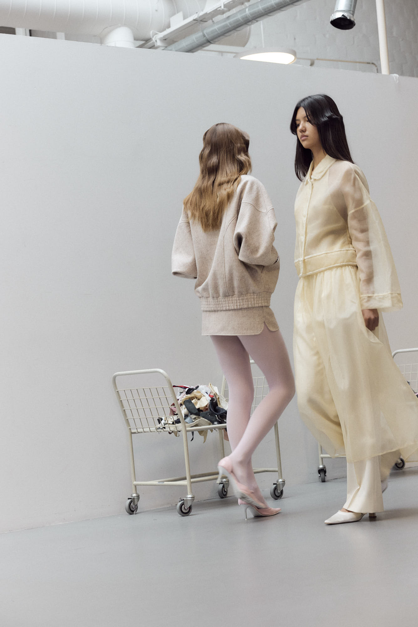 Dette var ESPs første sommerkolleksjon (SS26), og det ble en overgang fra deres velkjente strikkede ytterplagg til lette, luftige materialer. Organzaen la seg som et skjørt slør over skreddersydde arbeidstøybukser og avslappet sommertailoring, og skapte en dialog mellom kropp og stoff med sin transparente eleganse. Fargene var dempede, stoffene lett tilstede, som minner som gradvis falmer, men likevel lever. Med falmede sømmer, diskrete lukkemekanismer og usynlige detaljer som bar spor av håndverk og historie.