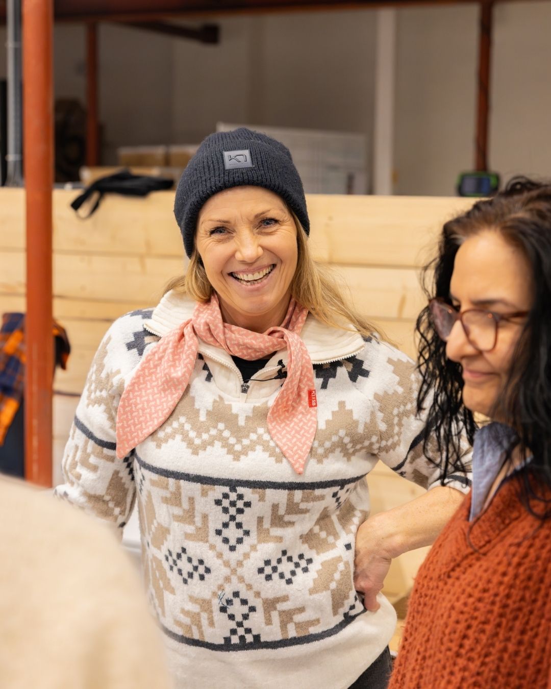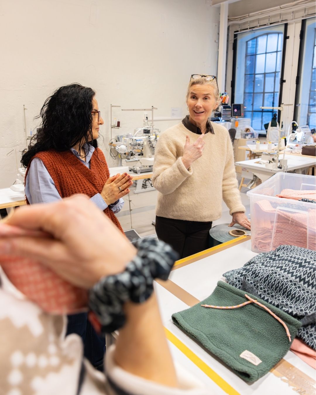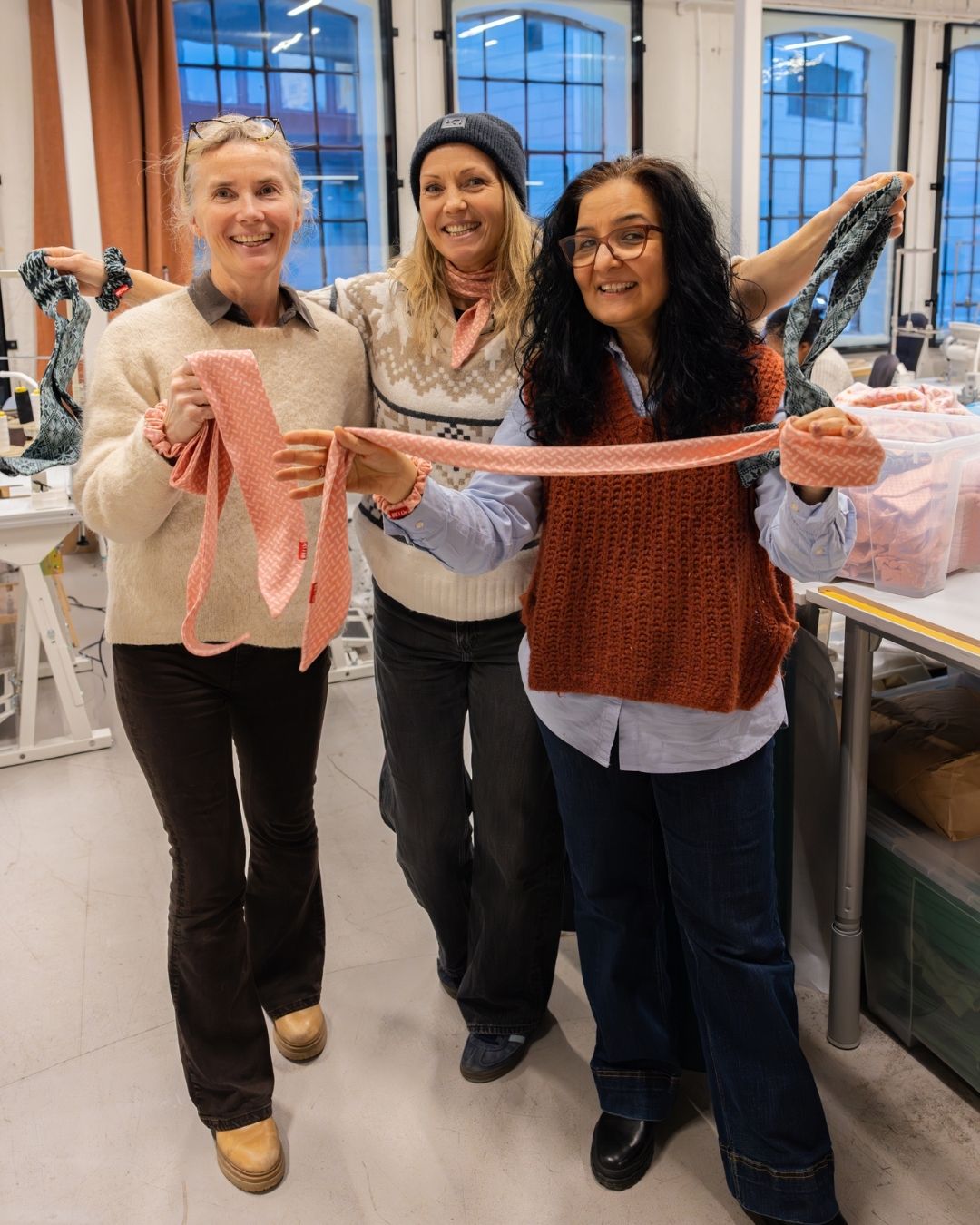 Sammen har de utviklet en liten kolleksjon skjerf og strikk laget av overskuddstekstiler – materialer som ellers kunne blitt til avfall. Men initiativet handler om langt mer enn bare gjenbruk av stoffrester.