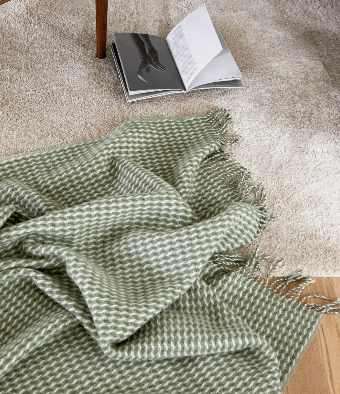 I stuen begynner atmosfæren med tekstilene. Vi velger myke pledd og sengetøy fra Høie, gjerne i varme jordfarger eller dype rødrøde toner. Teksturer som ull, fuskepels og grove strikk gir et lunt preg, mens lette lintekstiler balanserer uttrykket og skaper en sofistikert ro. På sofaen blander vi puter i ulike størrelser og materialer for et avslappet, men gjennomført uttrykk.