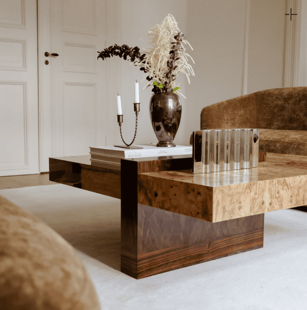 Det fine med burl er at det ikke føles som en «rask» trend, men mer som en gjenoppdagelse av noe tidløst. Et materiale som allerede har vært gjennom mye og som nå får skinne litt på nytt. Burl hadde sin storhetstid på 70- og 80-tallet, ofte i form av høyglansede salongbord, skapfronter og luksuriøse detaljer i biler og yacht-interiør. Nå vender materialet tilbake, men i en mykere og mer moderne tolkning. I stedet for perfekte linjer og fabrikkproduserte flater, velger vi nå møbler som ser ut som de har en historie. Burl tre er levende, det er uregelmessig, og kanskje nettopp derfor føles det så riktig akkurat nå.